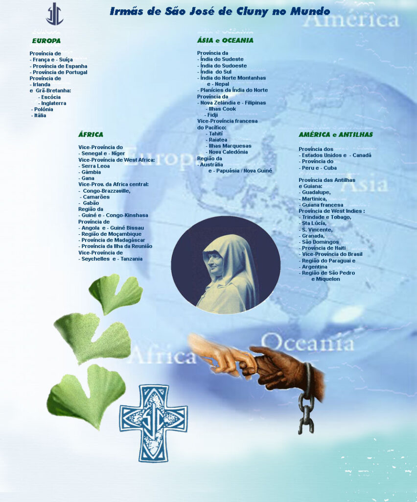 Como presença de Deus nos cinco continentes, as Irmãs de São José de Cluny continuam a ação evangelizadora de Ana Maria Javouhey em mais de 50 países e em 4 estados brasileiros.